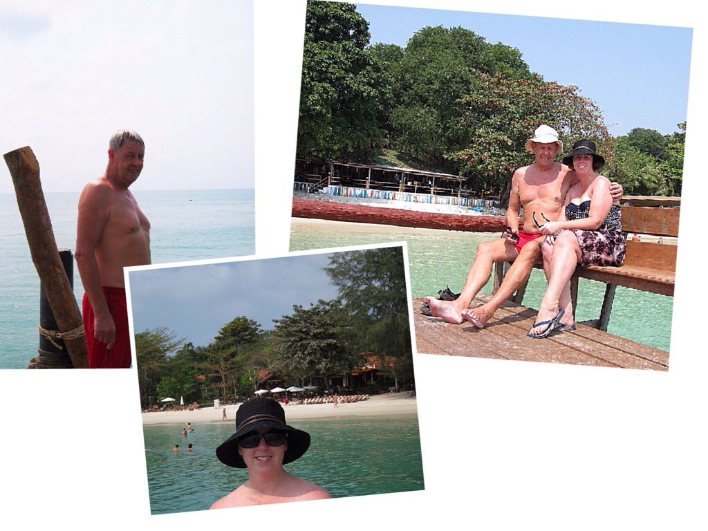 We took the bus 200km down to Koh Samet, 3 hours 10 min south of Bangkok and then the ferry across to the island. There we hopped in the back of a ute with about 10 other people for 3km drive to our accommodation, the Ao Cho Grand View. It was the bumpiest ride we have had in a long time. It even made Laos roads look like motorways in comparison.